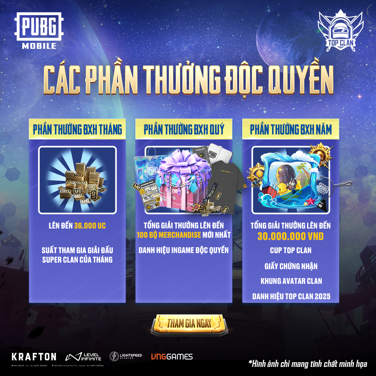 | TOP 3 | Nhận được 10 bộ merchandise mới nhất | 03 danh hiệu Clan Thống Trị Quý |
