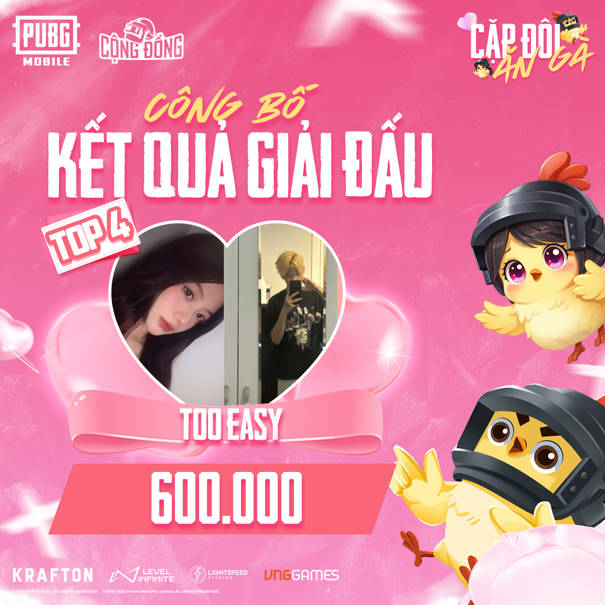 Vượt qua hàng trăm đội hình nam - nữ trên khắp cộng đồng PUBG Mobile, 5 cặp đôi xuất sắc nhất đã khẳng định bản lĩnh bằng sự phối hợp ăn ý, chiến thuật linh hoạt và kỹ năng cá nhân ấn tượng, qua đó vươn lên dẫn đầu bảng xếp hạng.