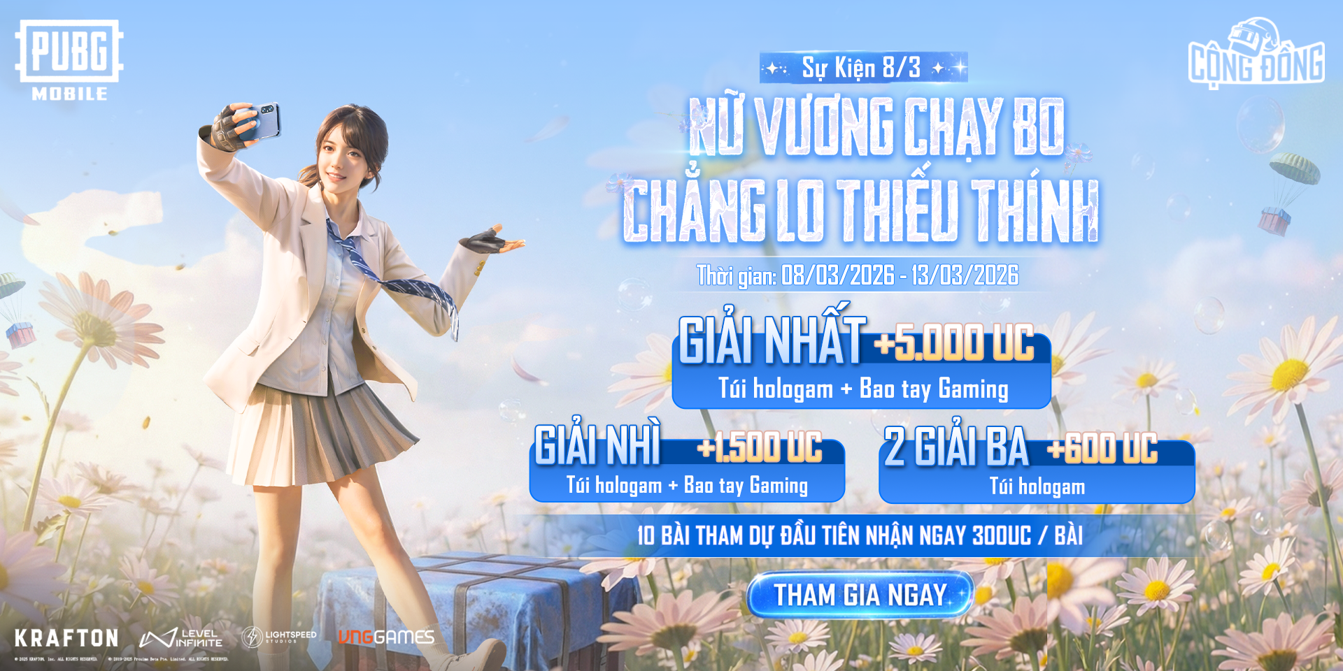 TTháng 3 gõ cửa mang theo không khí tưng bừng của Ngày Quốc tế Phụ nữ 8/3, đồng thời đánh dấu 8 năm hành trình rực rỡ của PUBG Mobile. Từ Erangel đến Miramar, những “tay lái lụa” và “tay súng thiện xạ” nữ không chỉ tạo nên các màn combat mãn nhãn, mà còn thổi bùng sức sống cho cộng đồng game - nơi bản lĩnh, kỹ năng và cá tính cùng tỏa sáng.