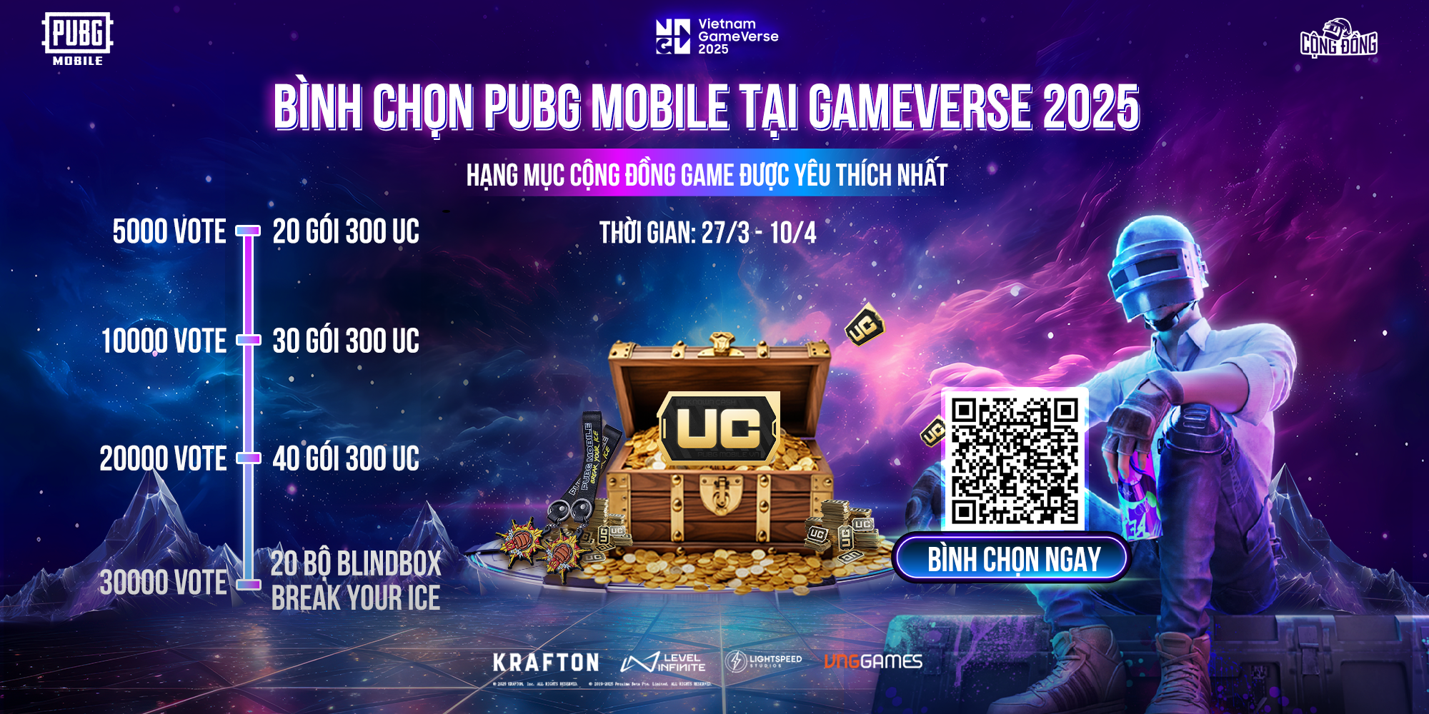 Để thể hiện sự yêu mến của đồng bo đối với cộng đồng PUBG Mobile VNG! Chỉ với vài bước đơn giản, bạn không chỉ giúp PUBG Mobile VNG giành chiến thắng mà còn có cơ hội nhận được UC và các phần quà may mắn cực hấp dẫn.