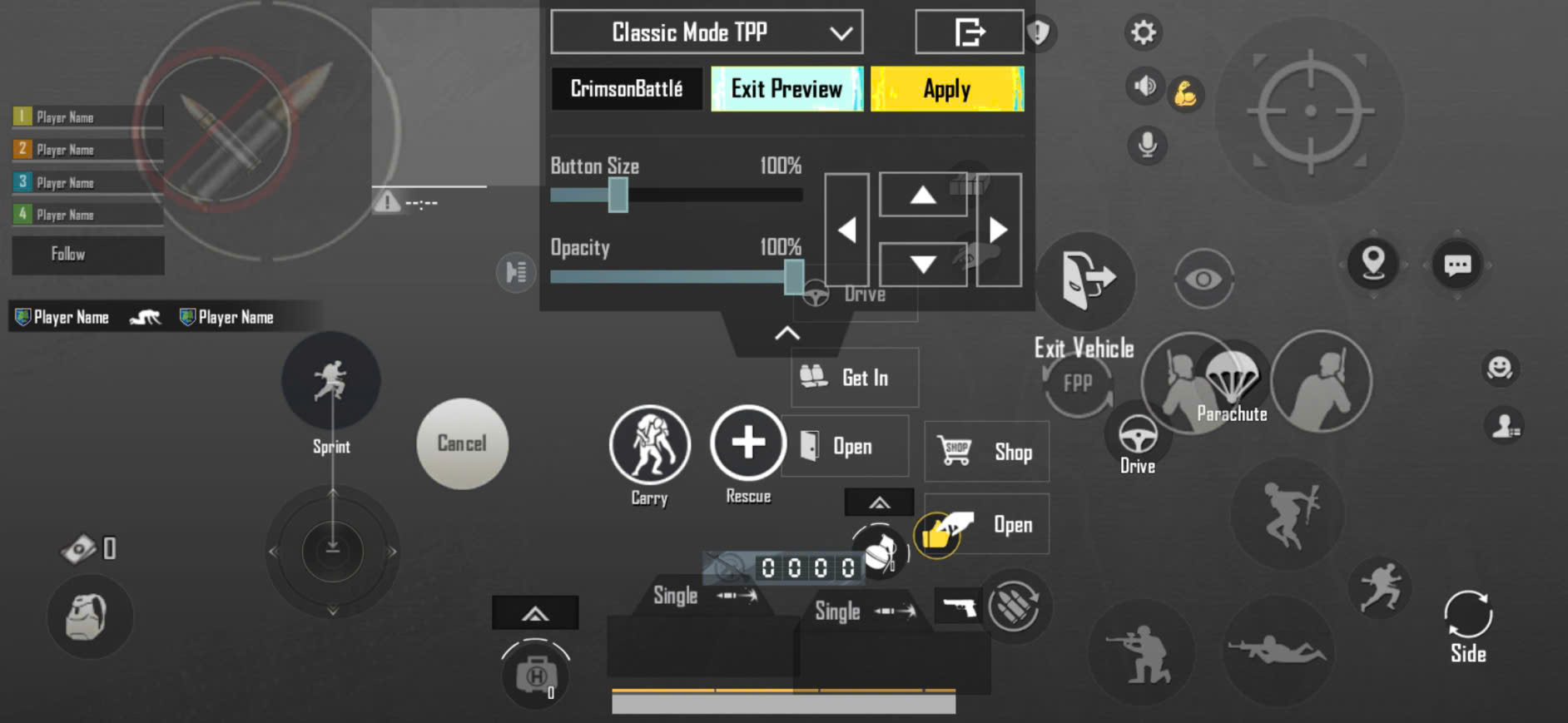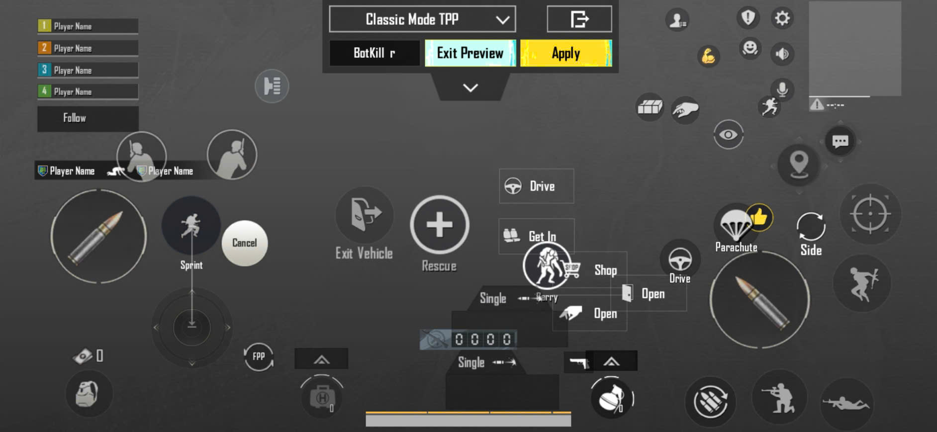 - Chọn layout 2 ngón, di chuyển các nút bắn / nhảy / nằm / đổi vũ khí về hai góc dưới màn hình để thuận tiện thao tác bằng hai ngón cái.