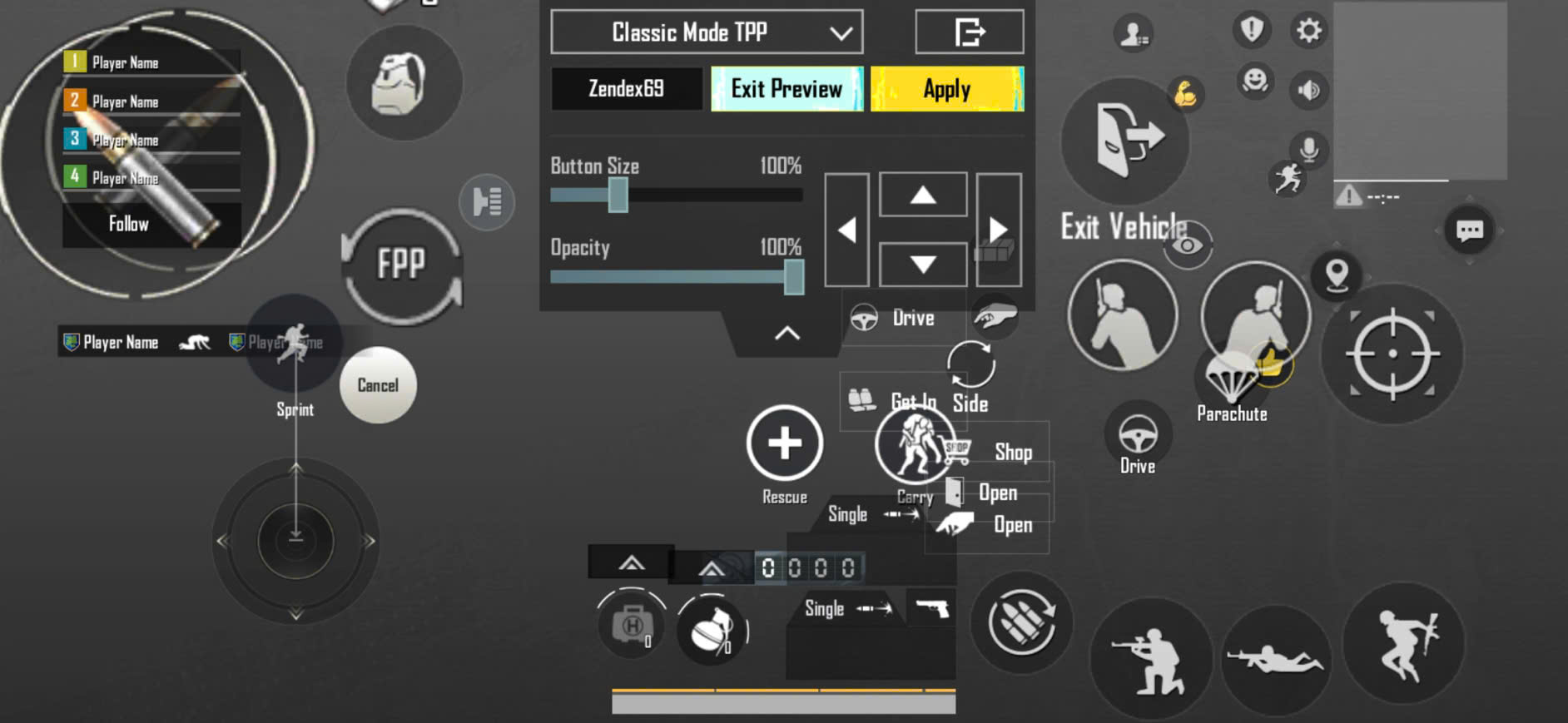 - Chọn layout 4 ngón, sắp xếp lại nút bấm theo vị trí tay thuận tiện nhất.