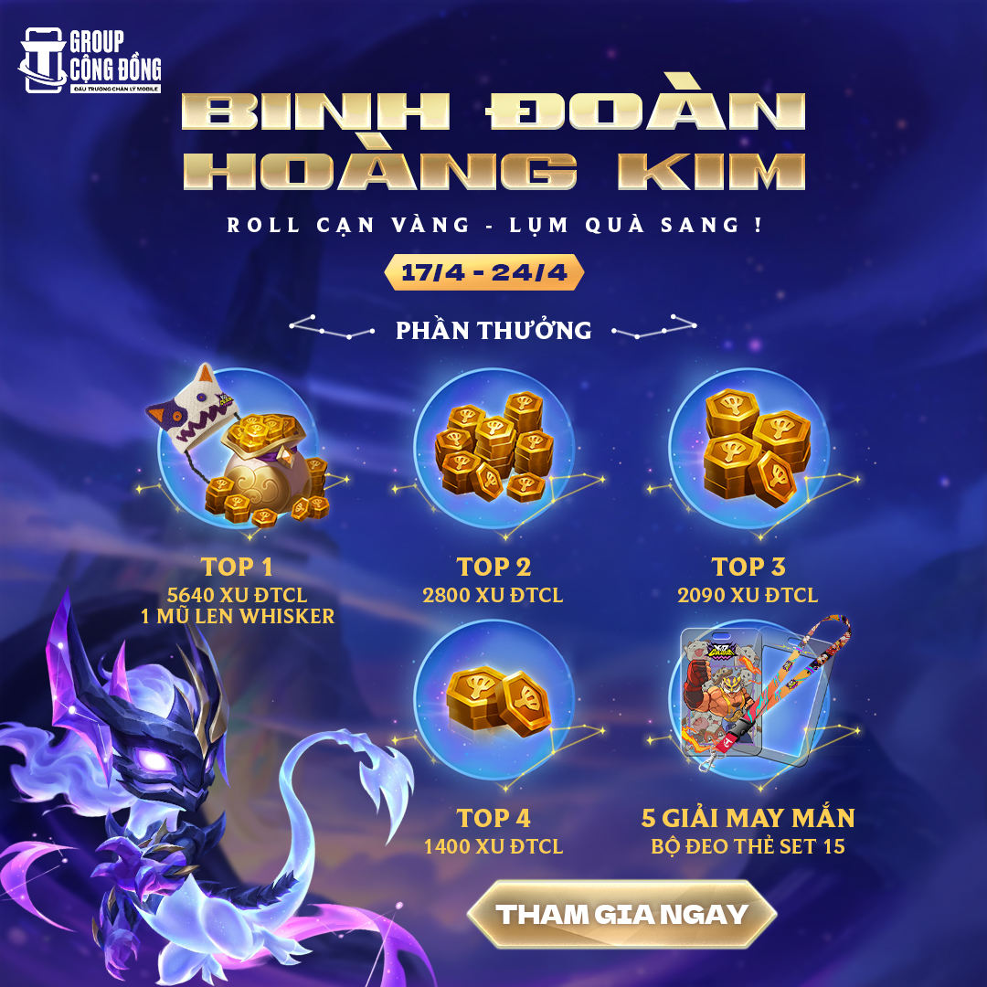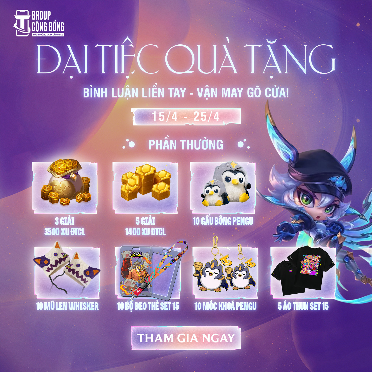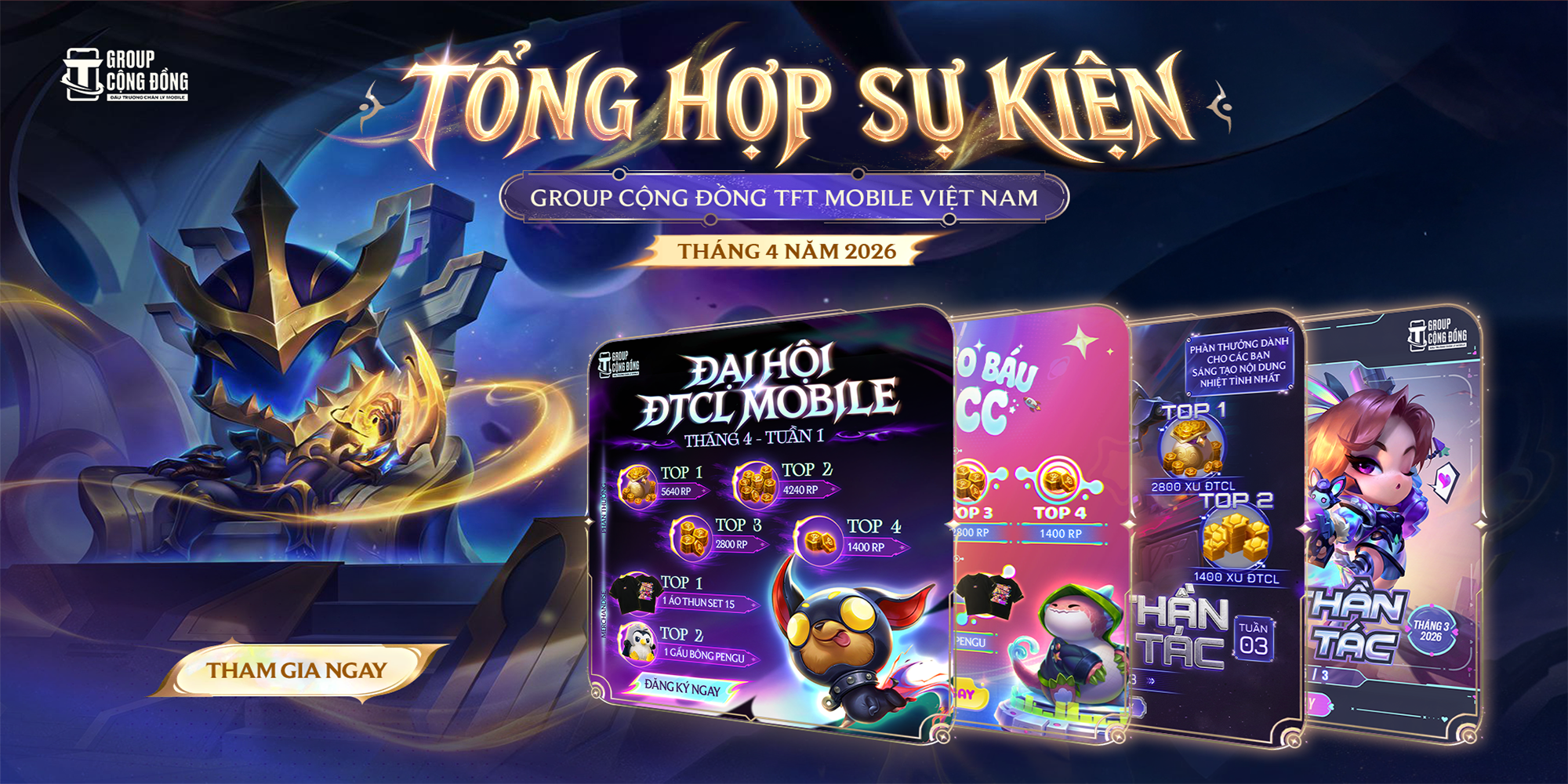 Tháng 4 sôi động với hàng loạt lễ hội lớn, cộng đồng Đấu Trường Chân Lý (ĐTCL) Việt Nam cũng mang đến chuỗi sự kiện hấp dẫn dành cho người chơi. Từ các hoạt động tri ân, thử thách săn tướng 3 sao, đến những giải đấu mobile kịch tính - tất cả đều sẵn sàng để bạn tham gia và chinh phục.
