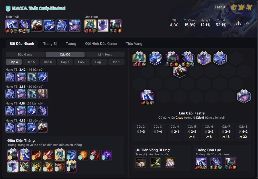 - Kindred: Tướng chính của đội hình N.O.V.A flex, bắn liên tục, dễ kết hợp với 5–6 N.O.V.A để tối ưu Strike/Chí mạng.