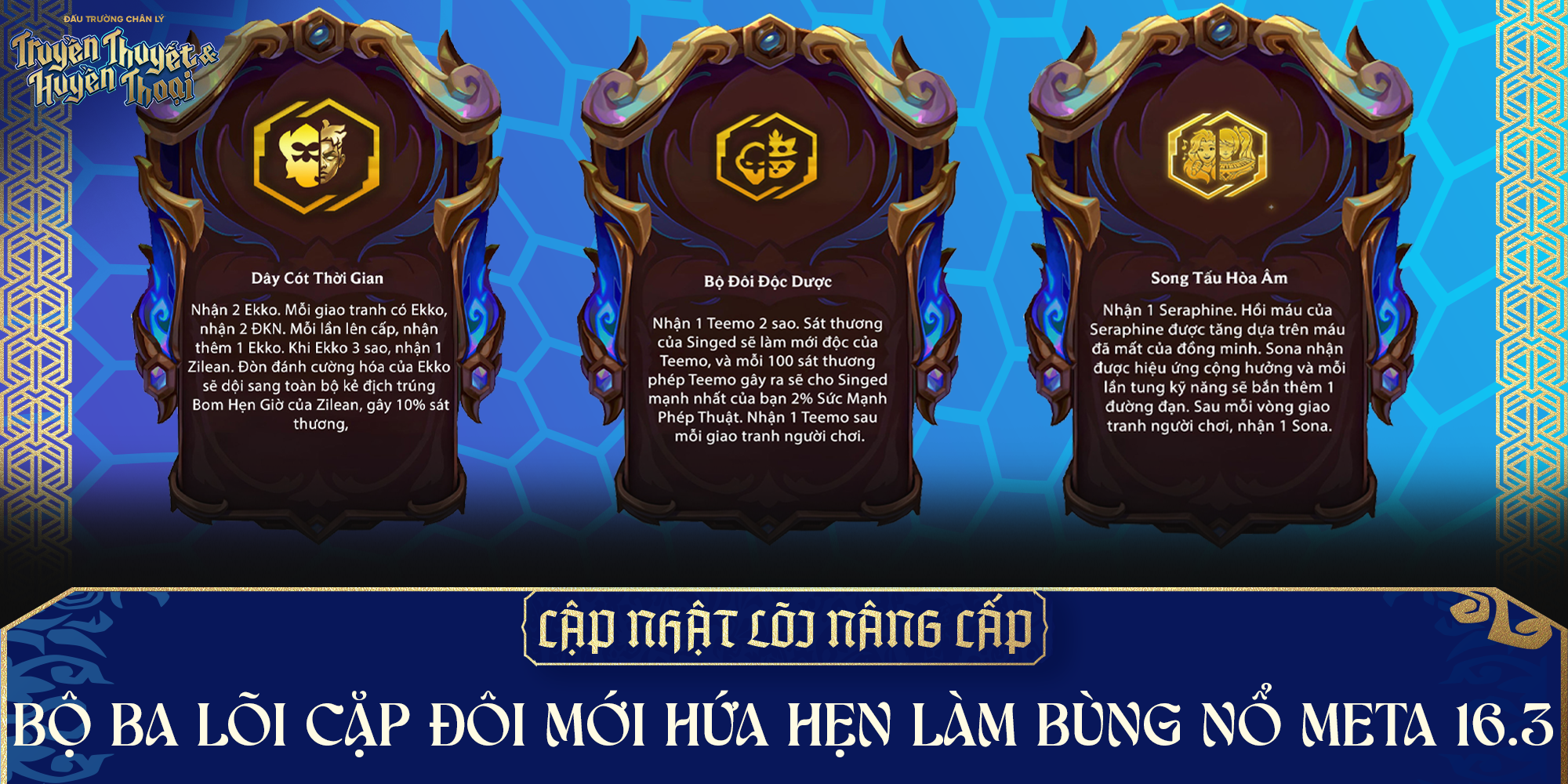 Khi sáng tạo gặp sức mạnh, bản cập nhật ĐTCL 16.3 không chỉ dừng lại ở những điều chỉnh tướng hay hệ, mà còn mở ra hướng xây dựng đội hình hoàn toàn mới - nơi người chơi được tự do thử nghiệm và khai phá các combo độc đáo đến từ ba cặp đôi đầy tiềm năng do cộng đồng Đấu Trường Chân Lý sáng tạo.