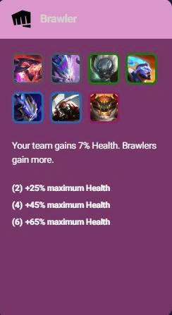 Tướng: Cho’Gath (1 vàng), Rek’Sai (1 vàng), Gragas (2 vàng), Pantheon (2 vàng), Maokai (3 vàng), Tahm Kench (4 vàng).