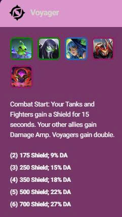 Khi bắt đầu giao tranh, các tướng thuộc nhóm chống chịu (Tank/Đấu Sĩ) nhận Lá Chắn trong 15 giây, trong khi các đồng minh còn lại được gia tăng sát thương. Hiệu ứng này được nhân đôi đối với các tướng Lữ Hành: