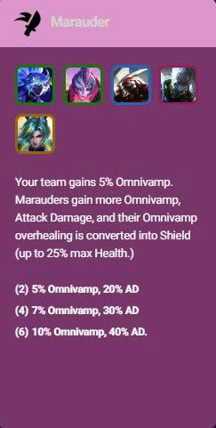 Toàn đội nhận 5% Hút Máu. Các tướng Toán Cướp được gia tăng thêm Hút Máu, đồng thời lượng hồi phục vượt mức sẽ được chuyển hóa thành Lá Chắn (tối đa bằng 25% Máu):