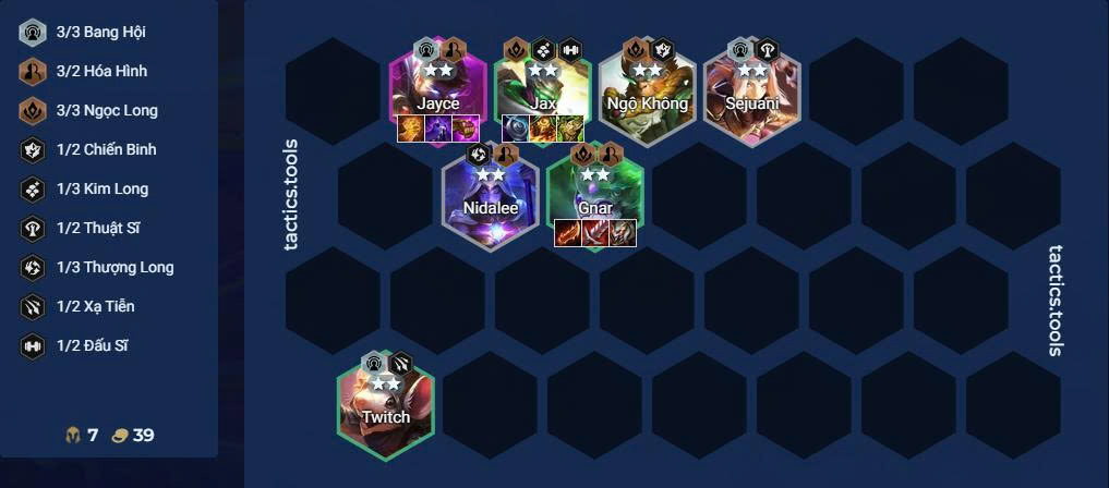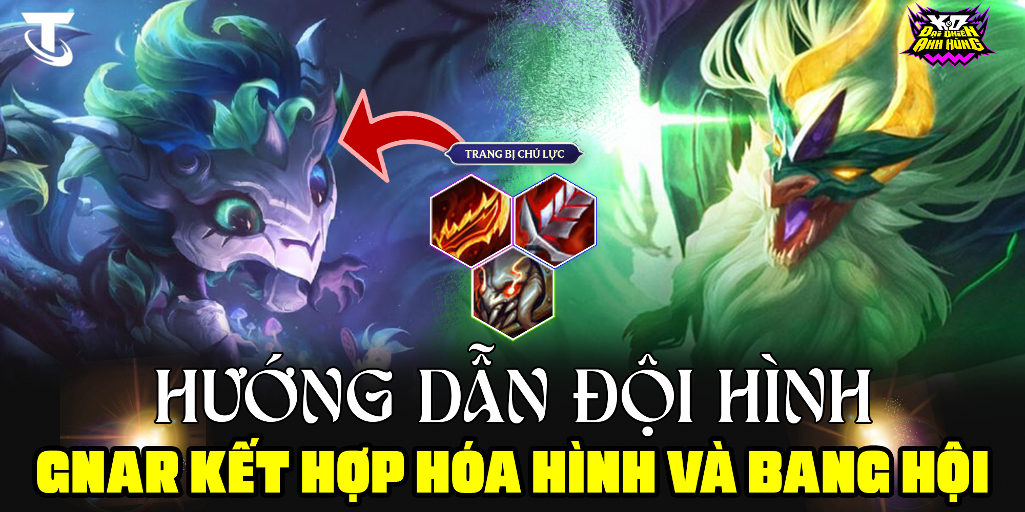 - Hóa Hình – Bang Hội: Nếu sớm có Gnar và Jax, hãy thử hướng đi flex. Đội hình xoay quanh bộ đôi Hóa Hình – Bang Hội với khả năng chống chịu đầu game rất tốt, giúp bạn giữ máu và ổn định kinh tế.