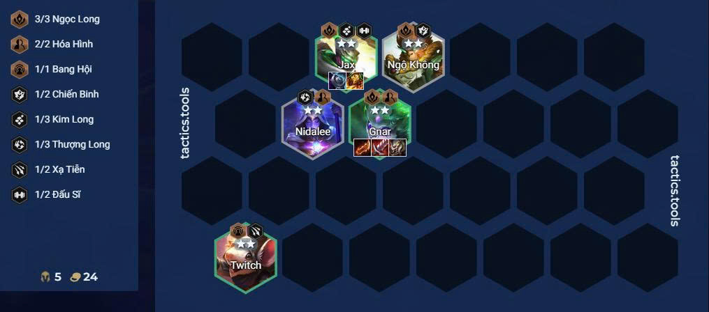 - Thuần Ngọc Long: Đây là hướng đơn giản, dễ vận hành nhất. Bạn có thể bắt đầu với Gnar, Karma, Wukong và Jayce để tận dụng buff Ngọc Long cùng khả năng buff máu, tạo nền cho Gnar bén duyên với carry sớm.