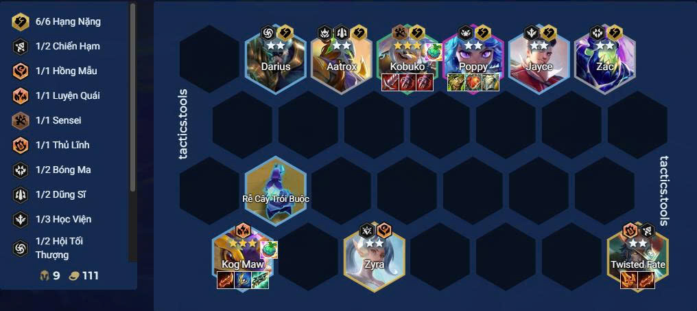 - Ưu tiên trang bị cho Kobuko, tiếp đến Poppy, rồi Kog'Maw, Twisted Fate hoặc Zyra.