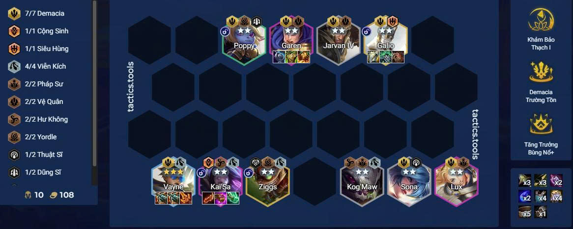 Kích 5 Demacia, xây dựng đội hình trụ vững.
