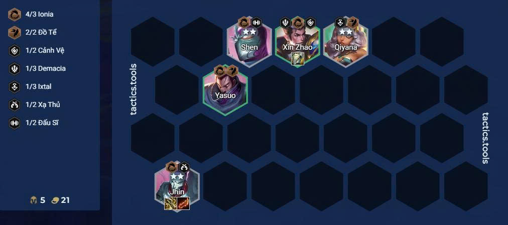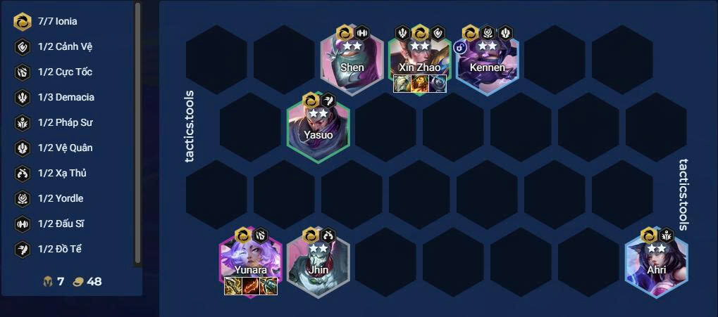 - 2-4 Ionia gồm Shen (1 vàng), Xin Zhao (2 vàng), Yasuo (2 vàng).