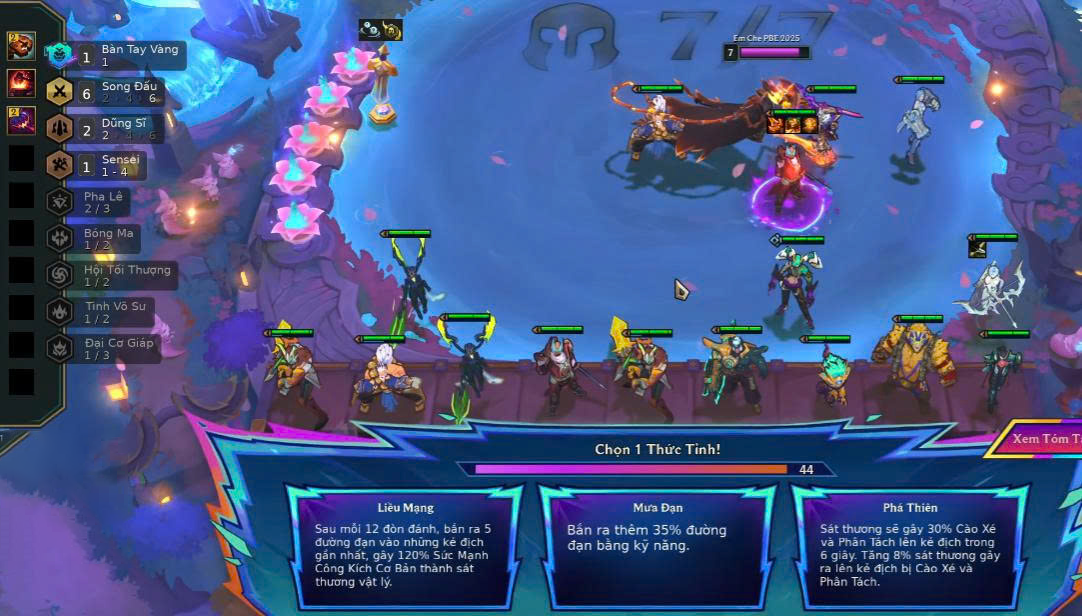 - Đội hình reroll hoặc cần cộng dồn chỉ số: với các đội hình đánh theo kiểu tích lũy sức mạnh (ví dụ: mỗi lần hạ gục được tăng tốc đánh, hồi máu, v.v.), hãy ưu tiên các Thức Tỉnh có hiệu ứng cộng dồn mạnh để tối ưu hóa sức mạnh về cuối trận.