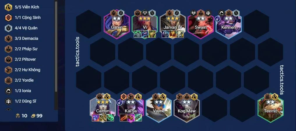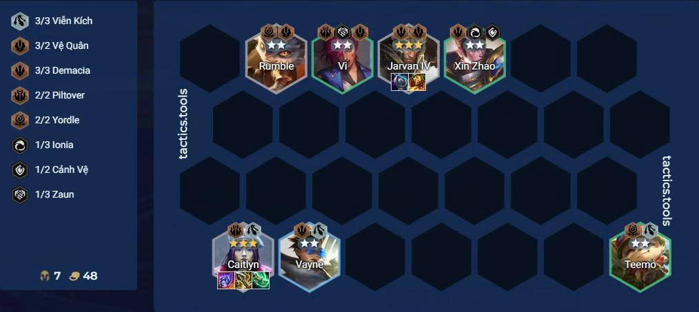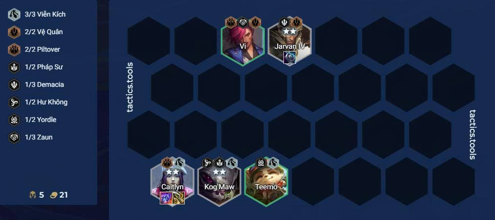 - Tộc hệ chính: 4–5 Viễn Kích + Piltover.