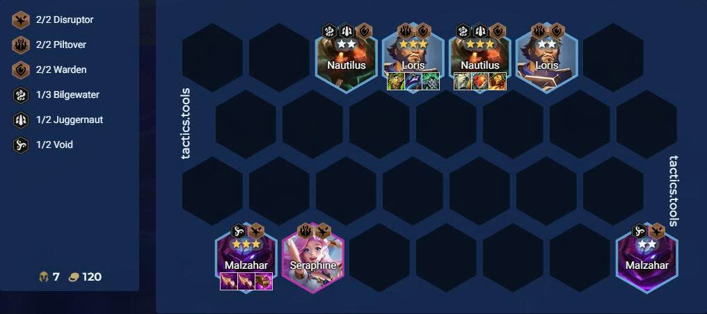 - Nếu chưa có 2 Seraphine, bổ sung thêm tướng thuộc tộc hệ Hư Không bất kỳ để kích hoạt.