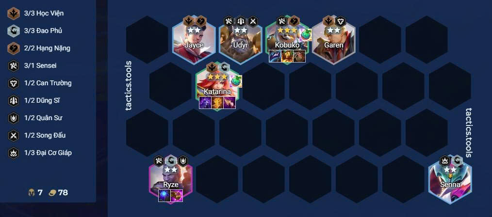 - Ổn định đội hình tại cấp 6-7, ưu tiên roll lên Katarina, Kobuko 3 sao.