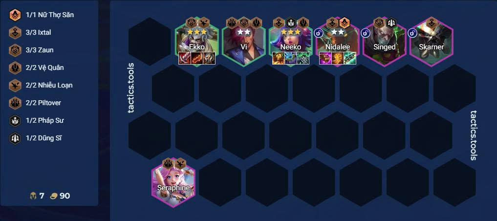 Đội hình Ekko – Nidalee không chỉ tận dụng những buff mạnh mẽ dành cho Zaun trong bản 16.2 mà còn mang đến một lối chơi đa dạng, dễ tùy biến. Nhịp roll linh hoạt, khả năng phòng thủ tốt và khả năng gây sát thương hỗn hợp giúp đội hình này trở thành lựa chọn an toàn để leo rank ổn định.
