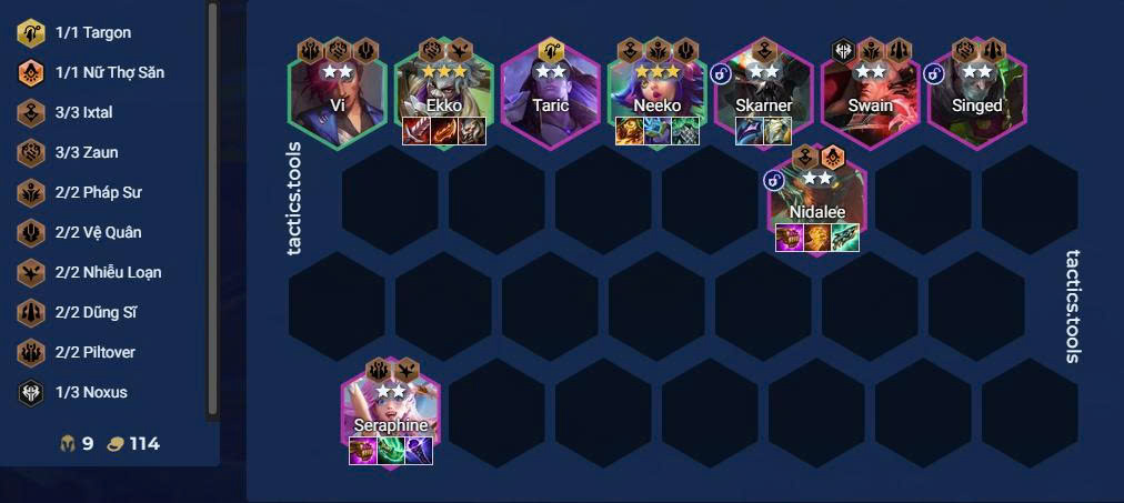 Khi đạt cấp 8, bạn sẽ bổ sung thêm các tướng 4 vàng mạnh, đồng thời dần chuyển đồ cho các tướng chủ lực. Dàn tướng khung có thể như sau: