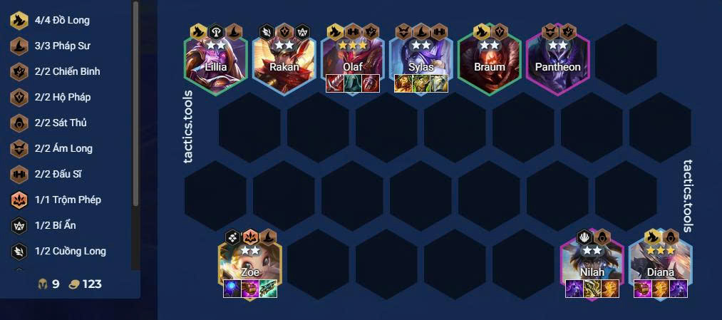 - Trong trường hợp, bạn có kinh tế nhiều có thể reroll thêm Sylas và Rakan 3 sao để có thể phòng hộ dàn tuyến đầu cực khỏe.