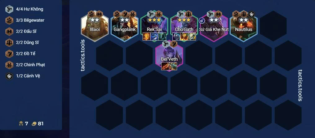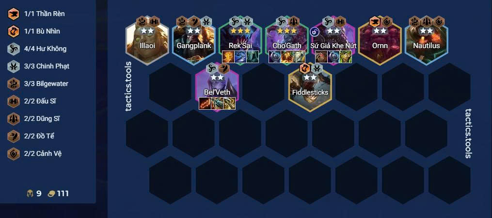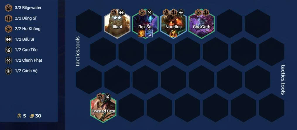Dàn tướng khởi đầu hiệu quả: Rek’Sai, Cho’Gath, Gangplank, Nautilus.