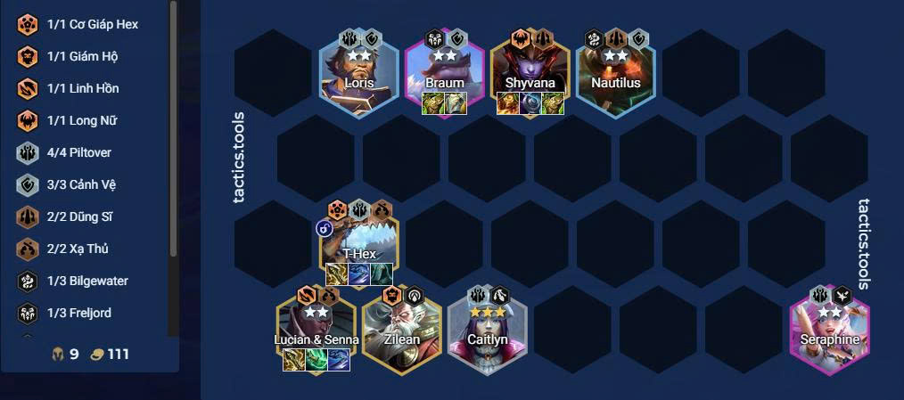 - Cấp 8 – 9: Linh hoạt “flex” sang các tướng 4, 5 vàng mạnh như: Shyvana , Lucian/Senna , Zilean , Braum.