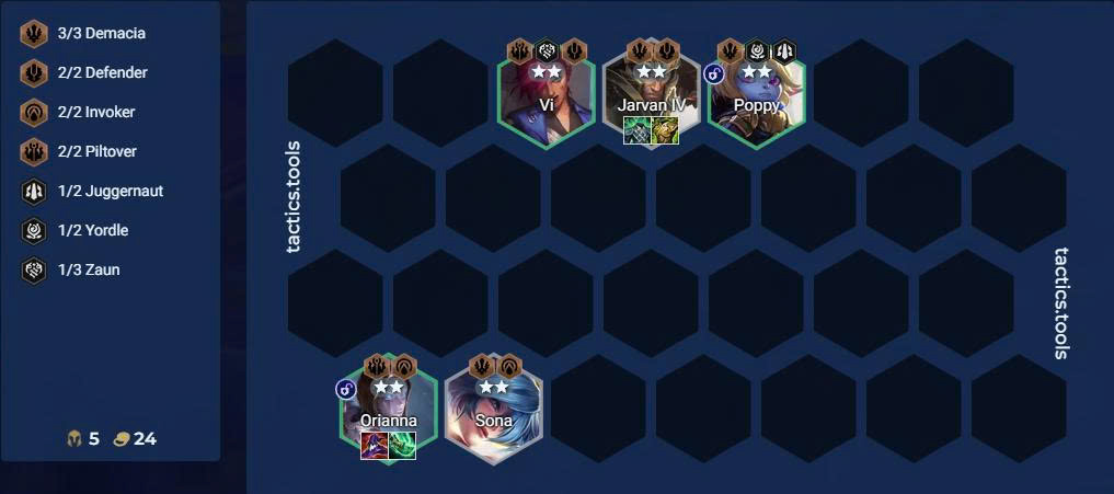 - Đội hình tạm thời: Sử dụng tướng phép mạnh ở đầu như Oriana, Sona để giữ máu ổn định trước khi tìm thấy Veigar.