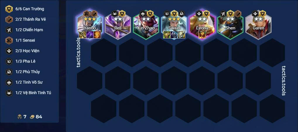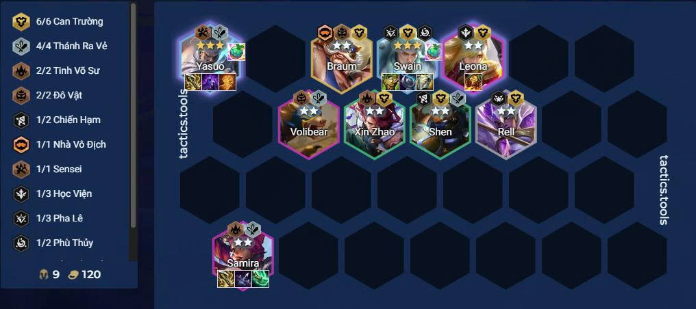 - Ưu tiên tướng: Yasuo và Swain là hai nhân vật chủ chốt bắt buộc phải đạt 3 sao để team giữ được sức mạnh tối đa.