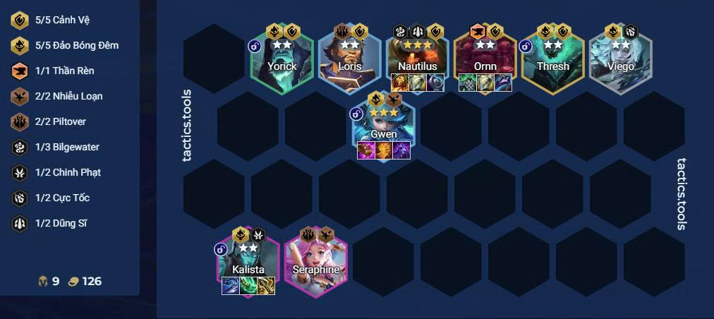- Lên cấp 7, bắt đầu slow roll Gwen và Loris hoặc Nautilus lên 3 sao. Hai vị tướng này chính là nền tảng để đội hình phát huy sức mạnh.