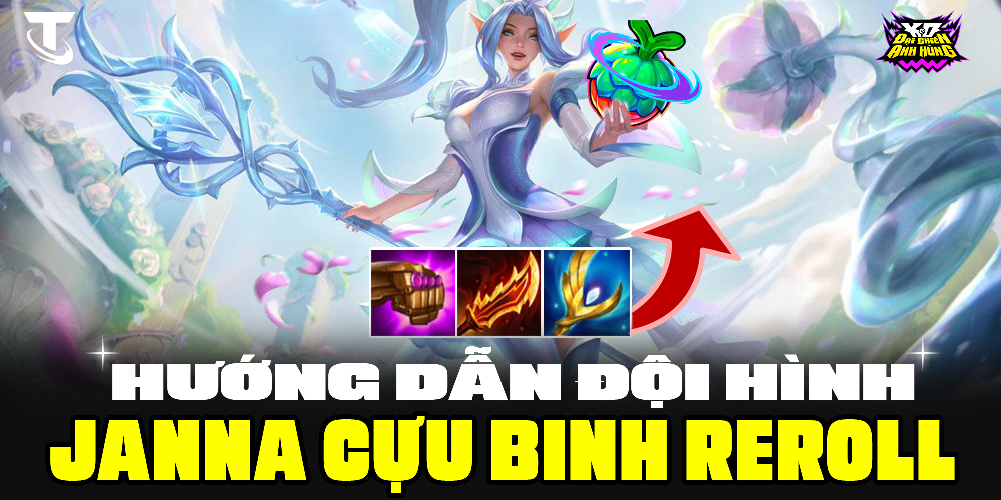 - Janna (chủ lực): Cuồng Đao + Diệt Khổng Lồ + Quyền Trượng Thiên Thần / Găng Bảo Thạch.
