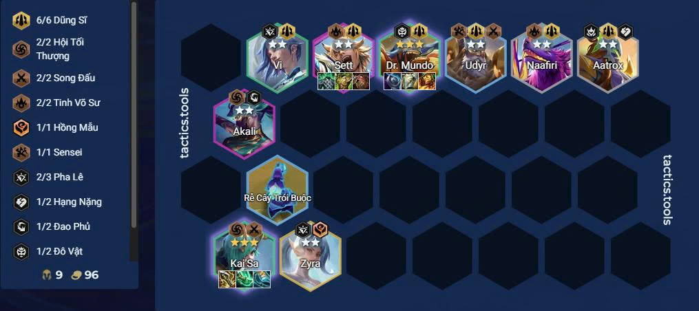 - Nếu có thể, lên 9 → kẹp thêm carry khác như Zyra, Twisted Fate hoặc Akali để kích 3 Hội Tối Thượng, giúp Kai’Sa càng hạ sát nhanh đối thủ.
