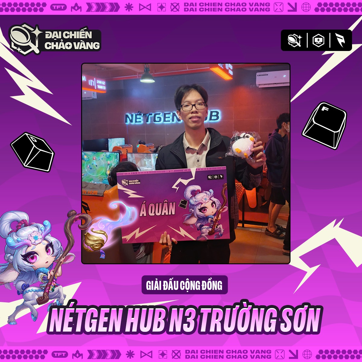 Cuối tuần vừa qua, NétGen Hub N3 Trường Sơn đã thật sự bùng nổ khi chào đón sự góp mặt của các cao thủ Teamfight Tactics quy tụ về tranh tài tại Giải Đấu Cộng Đồng – Đại Chiến Chảo Vàng. Bầu không khí cạnh tranh sôi động cùng những màn đối đầu căng thẳng đã tạo nên một ngày thi đấu đáng nhớ dành cho toàn bộ người chơi.