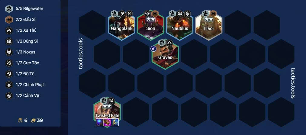 Nếu sớm có Illaoi, Twisted Fate hoặc Nautilus, hãy tận dụng để tạo khung cơ bản gồm: Illaoi – Twisted Fate – Graves – Briar – Sion/Cho’Gath.