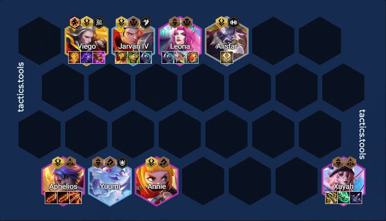 - Khi đạt cấp độ 7 - 8 - 9: Thêm Elise để kích hoạt 4 Chiến Đội và các tướng như Annie và Yuumi để hoàn thiện đội hình.