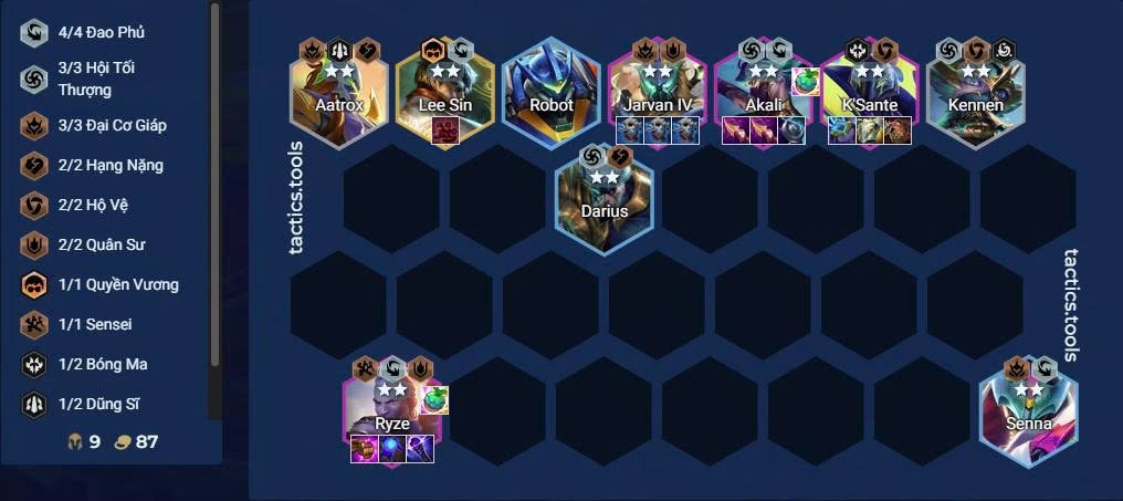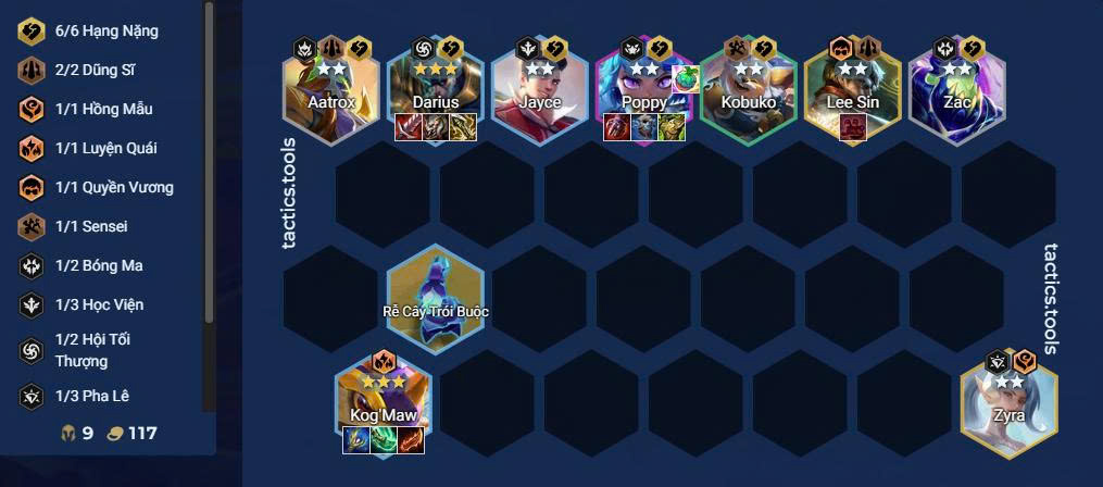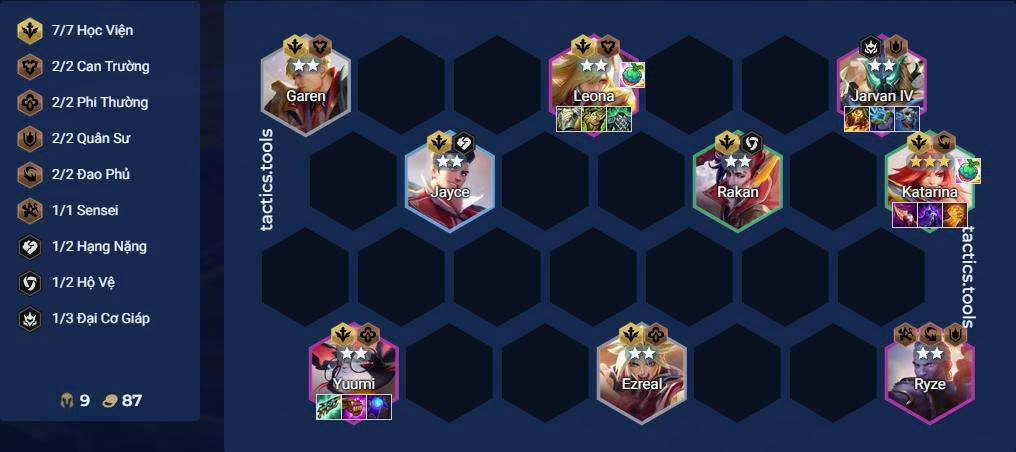 - Lối chơi: Khung 7 Học Viện + Ryze, roll ở 7 để hoàn thiện dàn chính.