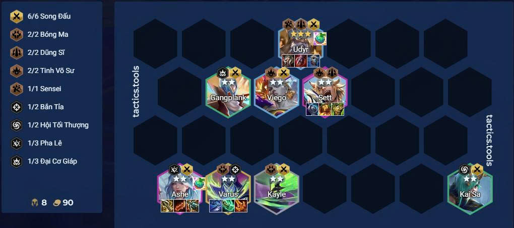 Đội hình Song Đấu tiếp tục hot khi Ashe, Udyr và Gangplank đều được buff đáng kể. Udyr có khả năng hồi máu ổn định khi lên 3 sao, Ashe được tăng sát thương đầu ra, còn Gangplank đủ sức chống chịu lẫn gây sát thương.
