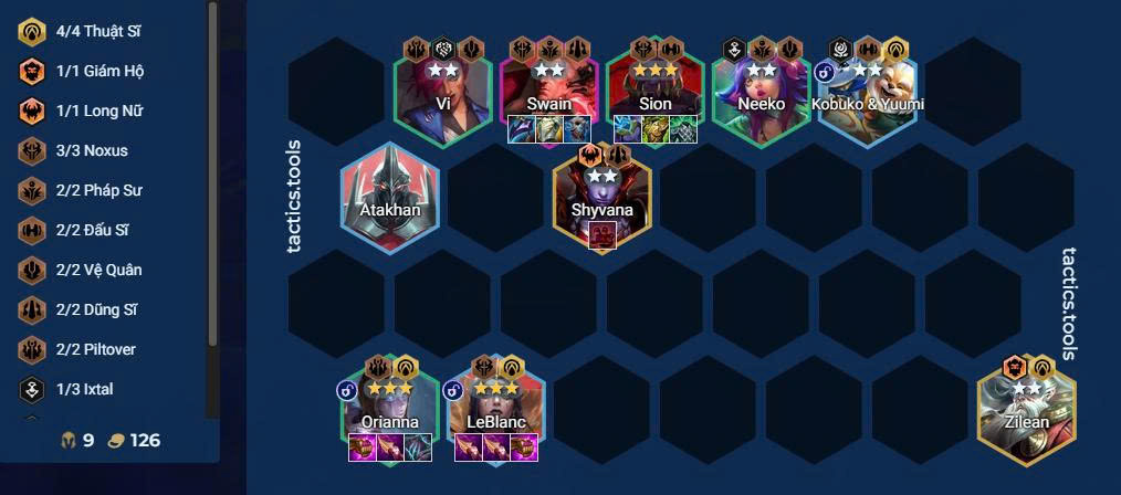 Đội hình: LeBlanc và Orianna làm carry, Sion reroll tank chính.
