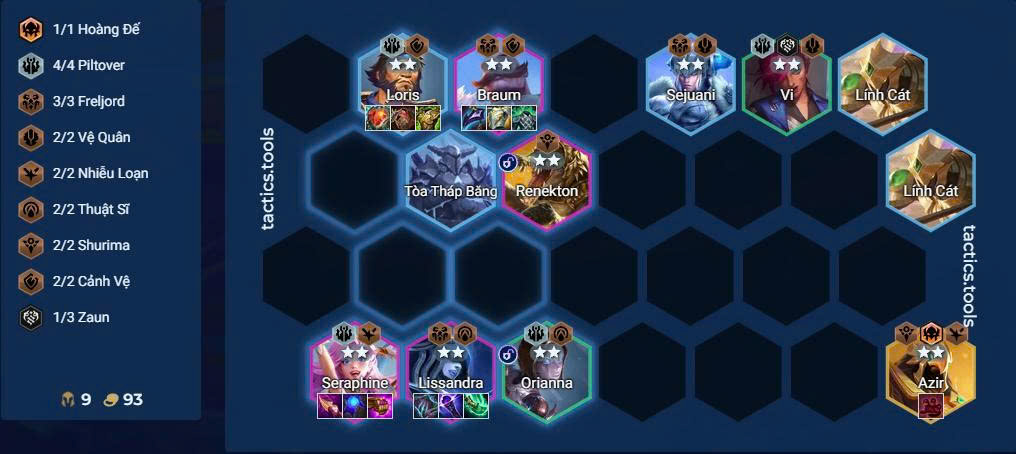 Đội hình: Seraphine + Lissandra làm chủ lực phép, Braum tank chính.