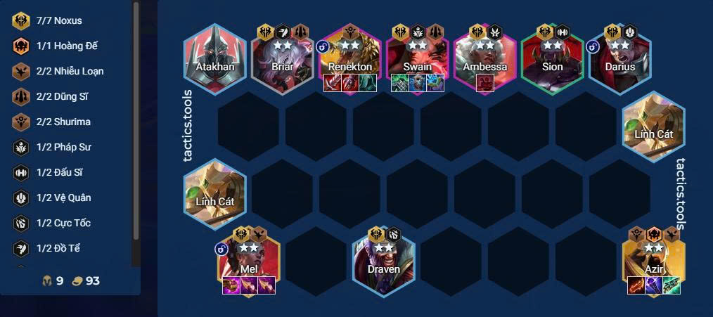 - Giai đoạn cuối: chuyển sang 7 Noxus hoặc thêm tộc/hệ Shurima là Azir, Renekton.