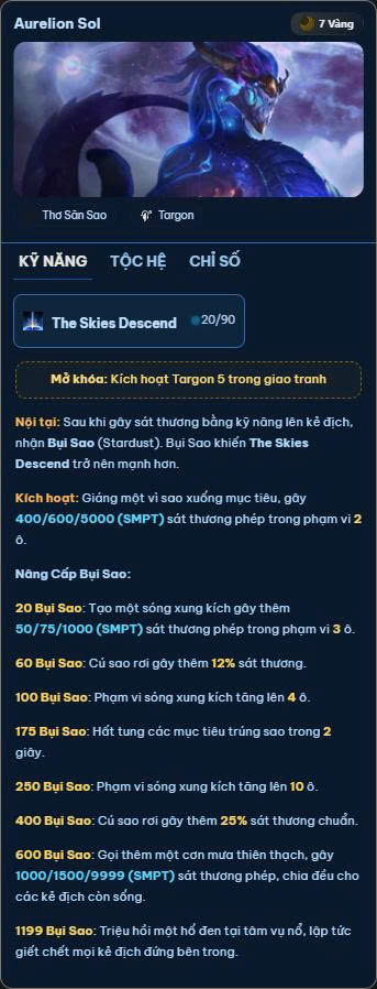 - Tộc/Hệ: Targon/ Lò Rèn Sao.