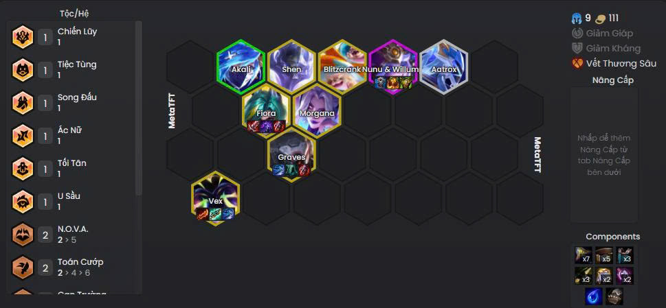 - Cơ chế: Dùng Vex làm chủ lực, xung quanh là các tướng chống chịu và hỗ trợ, tùy set có thể thêm các 5 vàng khác.