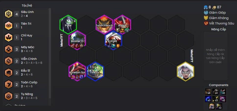- Do khó bổ sung nhiều tướng 5 vàng, đội hình thường hướng tới nâng cấp các tướng 4 vàng lên 3 sao để gia tăng khả năng cạnh tranh top 1.