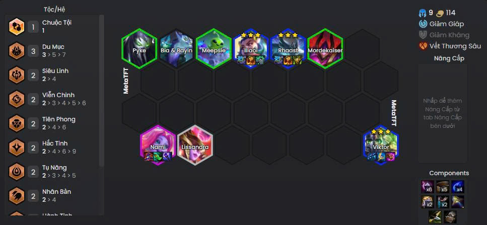 - Tướng hỗ trợ reroll: Pyke, Illaoi, Rhaast, Mordekaiser, Meepsie, Lissandra.