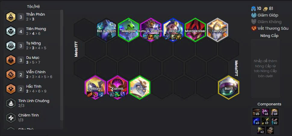 Leblanc Tiên Phong là đội hình không yêu cầu quá nhiều điều kiện để vận hành, nhưng vẫn duy trì tỉ lệ vào top 4 rất ổn định. Lối chơi quen thuộc xoay quanh khả năng: câu kéo, carry dọn bàn.