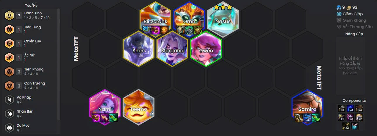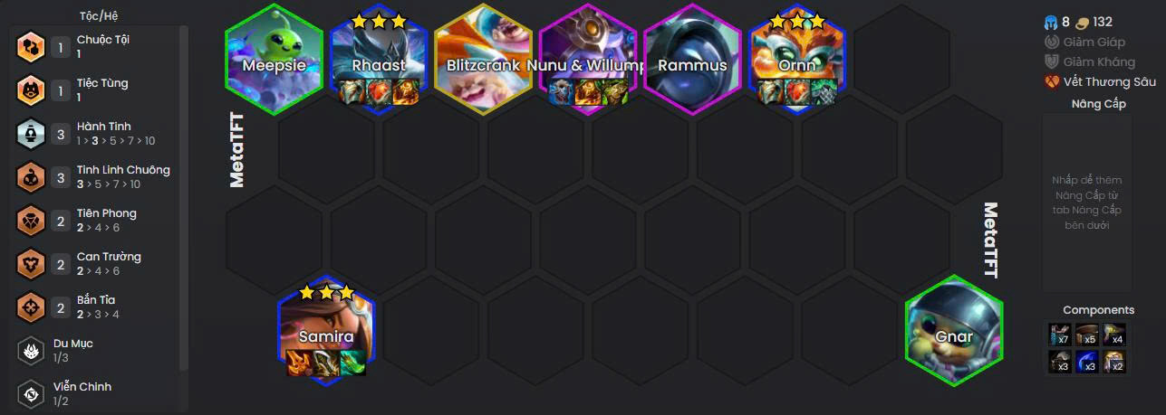 Lối chơi: đầu game roll 1 - 3 Hành Tinh để buff chủ lực như Samira, giữa game lên 5 - 7 Hành Tinh để ổn định đội hình, cuối game nếu có Ấn thì có thể hướng tới mốc 10 Hành Tinh, đặc biệt khi có đủ điều kiện với Blitzcrank hoặc Nami.