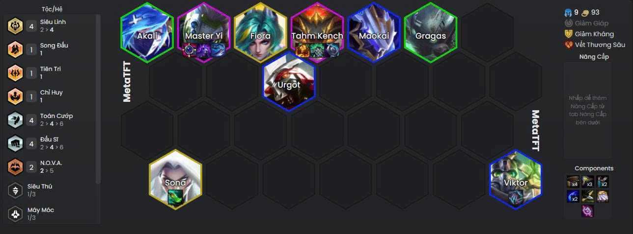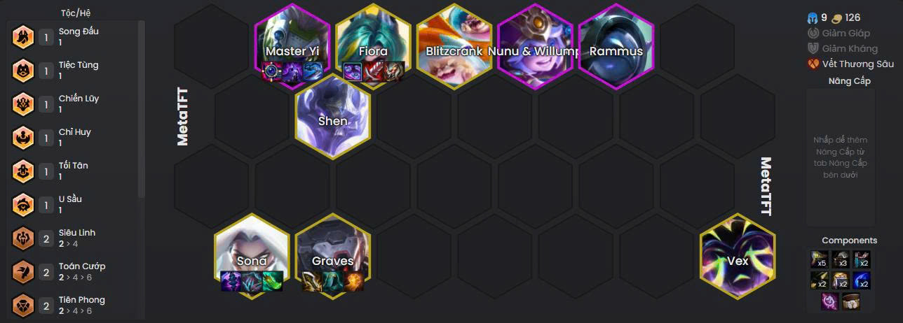 Đội hình linh hoạt, tối ưu sức mạnh của các tướng chủ lực cao cấp như Sona và Graves.