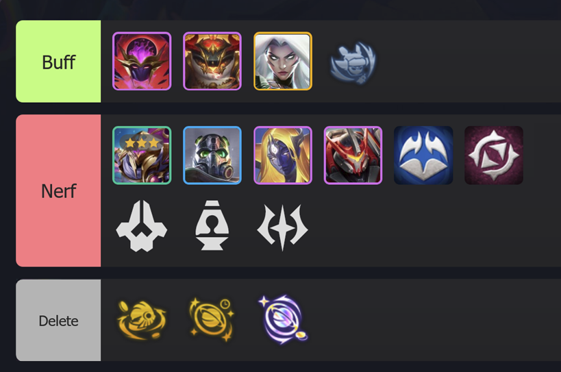 Các Ấn từng tạo ra đột biến lớn về sức mạnh đội hình như N.O.V.A hay Viễn Chinh đã bị điều chỉnh giảm chỉ số đáng kể.