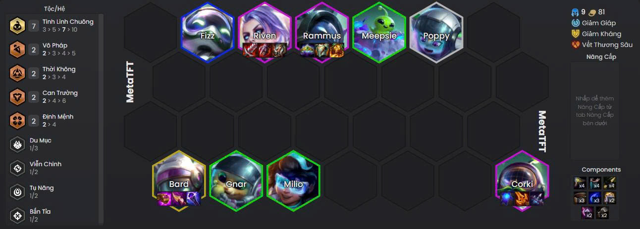 Lối chơi: Lên cấp đều đến cấp 7 - 8, sau đó roll để tìm Corki/Bard 4 - 5 vàng lên 2 sao.