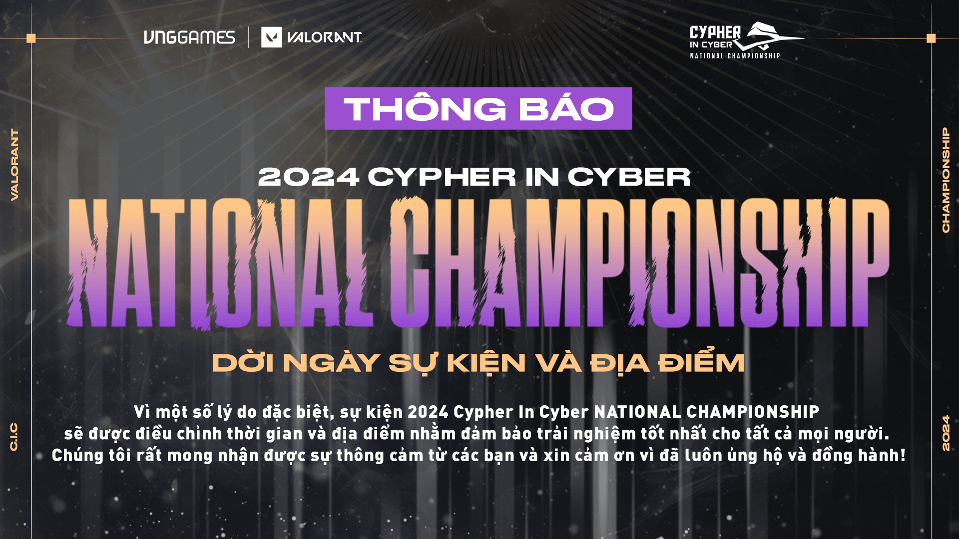 Vì một số lý do đặc biệt, sự kiện 2024 Cypher In Cyber NATIONAL CHAMPIONSHIP sẽ được điều chỉnh thời gian và địa điểm nhằm mang lại trải nghiệm tốt nhất cho tất cả người tham dự.