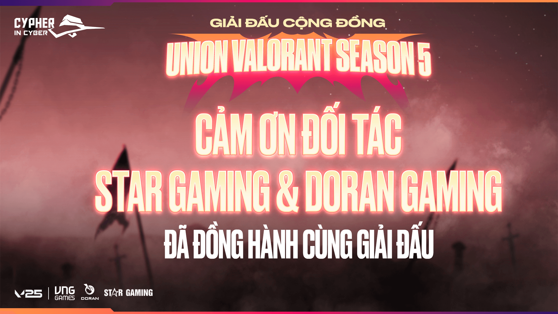 🙏 BTC giải đấu xin chân thành cảm ơn các đội tuyển, các bạn khán giả đã luôn đồng hành cùng giải đấu Cypher In Cyber. Đặc biệt, xin cảm ơn các đối tác Star Gaming & Doran Gaming làm nên sự thành công của mùa giải.